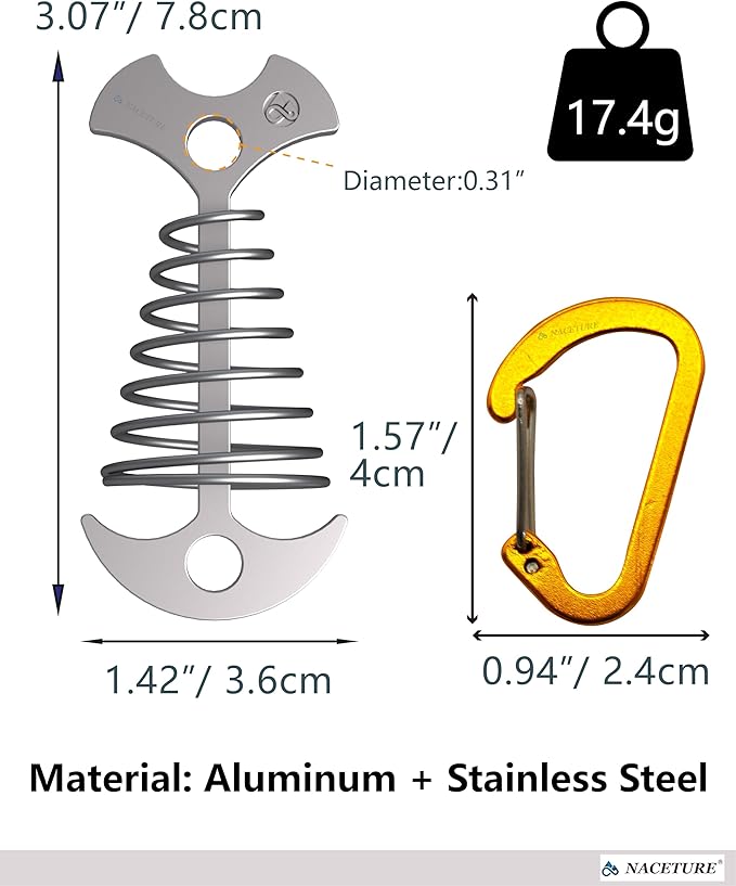 NACETURE Deck Anchors Pegs with Carabiners - Tie Down Anchor Rope Tensioner | Rope Tent Tie Down Stakes Clips, Canopy Tent Anchors Outdoor Camping Tent Accessories 10 Pack (Sliver)