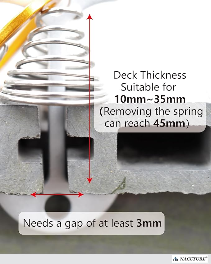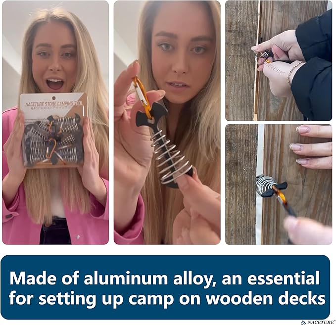 - ✅HASSLE-FREE INSTALLATION - With the unique shape, these slim and sleektentpegs, insert them in a wooden board gap and rotate to fix the tent without hole firmly. Practical and straightforward, only for boardwalk and deck camping. Disassembling your deck tie-down will be quick and easy.