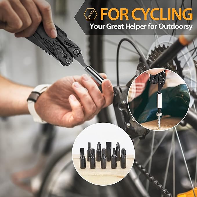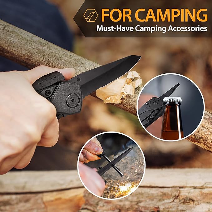 - [ An Essential Tool for Camping Hiking Fishing ]: This camping accessories compact multitool survival knife in all the essentials for camping, hiking, climbing, fishing - a variety of tools: multiple screwdrivers, pliers, blade, bottle opener, and more. The point is so portable and easy to carry, the pocket multitool knives for men comes with belt clip pouch, you don't have to carry a big tools bag, Let you start a new journey easily