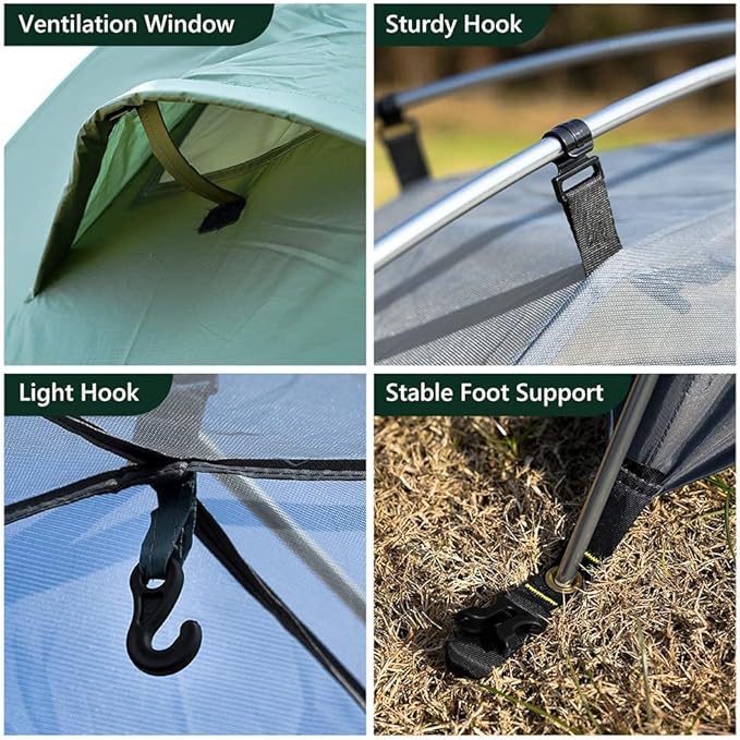 - 【Waterproof and Windproof】190T breathable fabric for inner tent, 210D reinforced oxford fabric for ground sheet, and 210T rip-stop polyester for external tent, with great waterproof PU3000m and UV protection. Better than fiberglass,we have 7001 aluminum tent poles, lightweight while maintaining high strength. Coupled with the double-layer design for warmth and windproof, the tent can protect you from wind and rain.