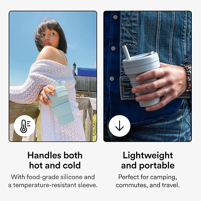 - Handles both hot & cold: Whether it’s hot tea or iced lattes, Stojo’s food-grade premium silicone and temperature-resistant sleeve can handle it all.
