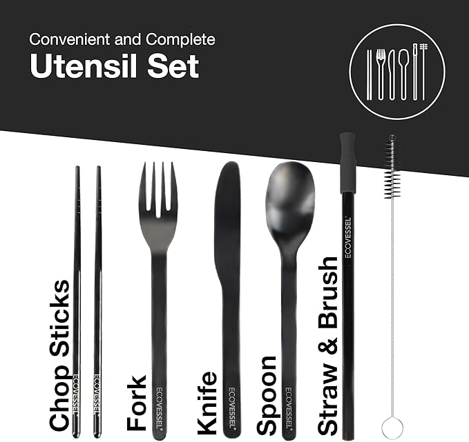- EASY TO CLEAN: This flatware set is dishwasher safe. They are also easy to clean by hand wash. The cleaning brush quickly and easily cleans the straw. Our utensil sets come in 2 colors.
