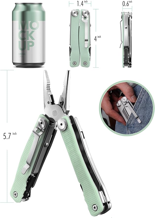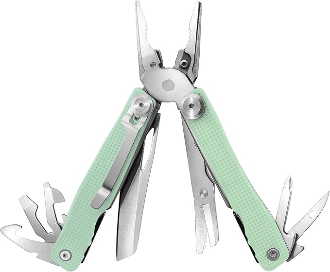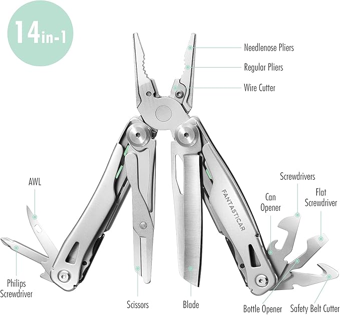 FantastiCAR 14 in 1 Multitool Pliers, Versatile Pocket Knife with Scissors, Knife Blade, Screwdriver, Bottle Opener, and Ideal for House or Camping Essentials, Holiday Gift Packaged (Mint Green)
