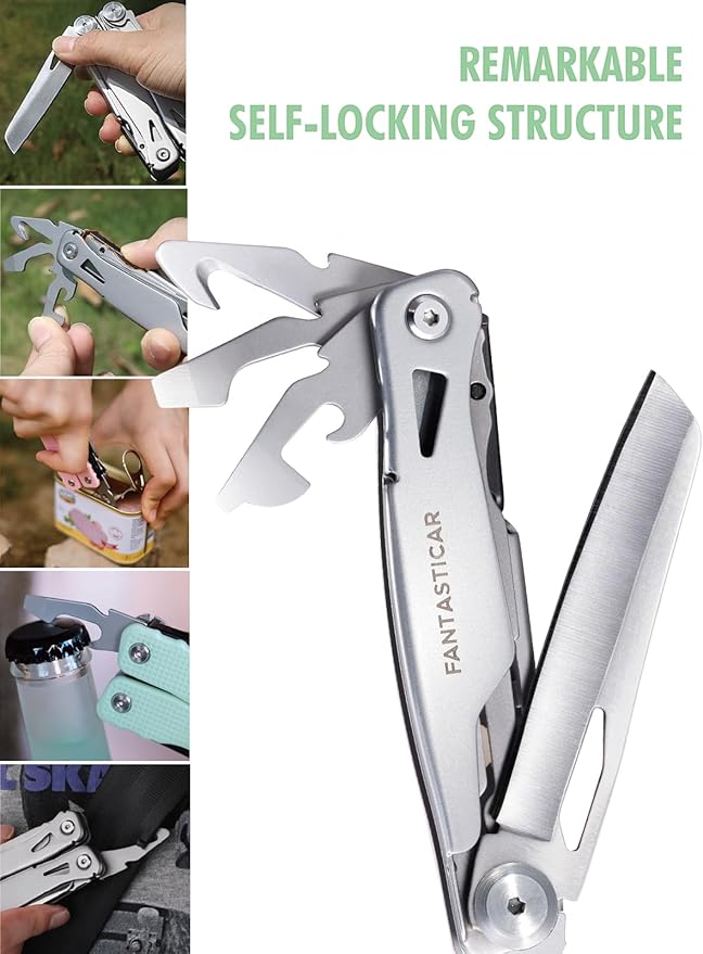 - [Safety Locking] With side auto-lock, every tool and knife blade (except the pliers heads) will lock when fully open, each tool snaps into a locked position with a good firm click