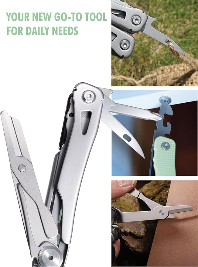 - [Ideal Gift Choice] This EDC multitool is a great White Elephant gifts choice for your family members, friends and colleagues. Stocking stuffer for outdoor adventurers who loves camping, fishing, hiking, cooking, picnic, DIY, etc