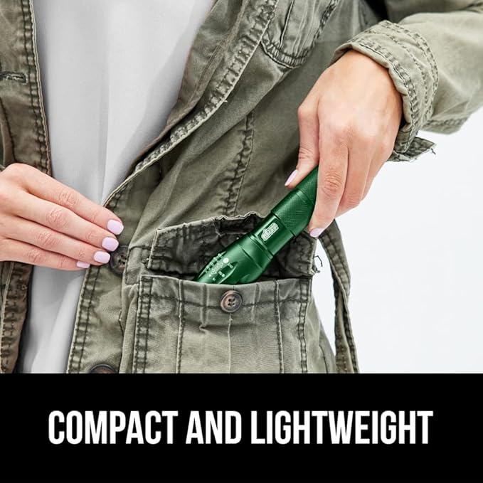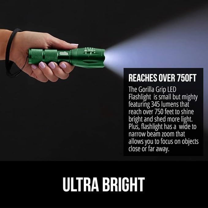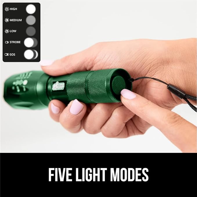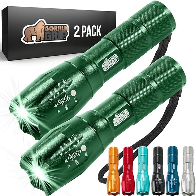 Gorilla Grip Powerful LED 750 FT Water Resistant 5 Adjustable Mode Tactical Flashlight, High Lumens Ultra Bright Battery Zoom Flashlights, Small Camping Car Mini Flash Light Accessories, 2 Pack Green