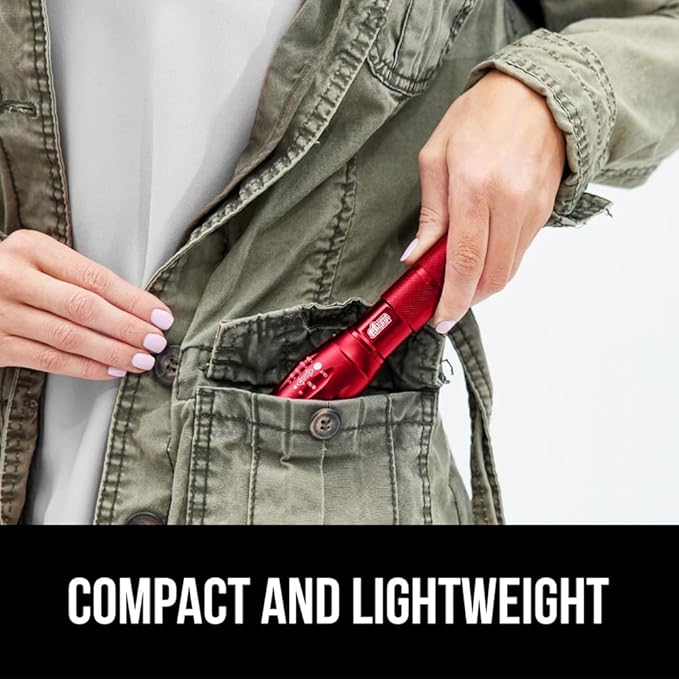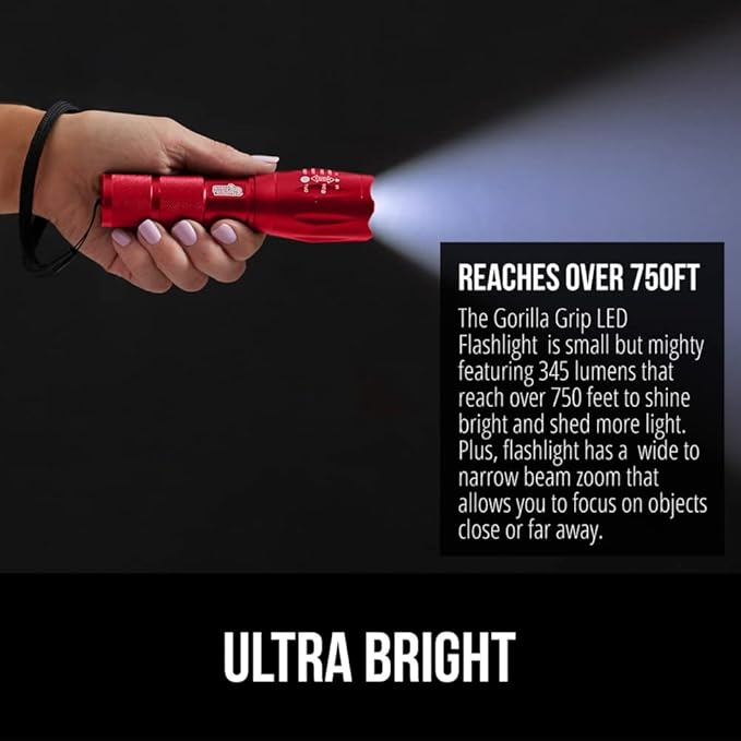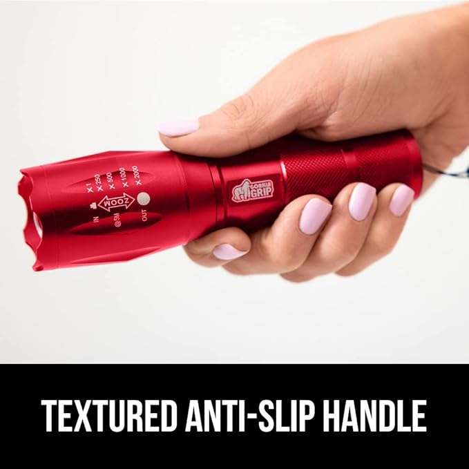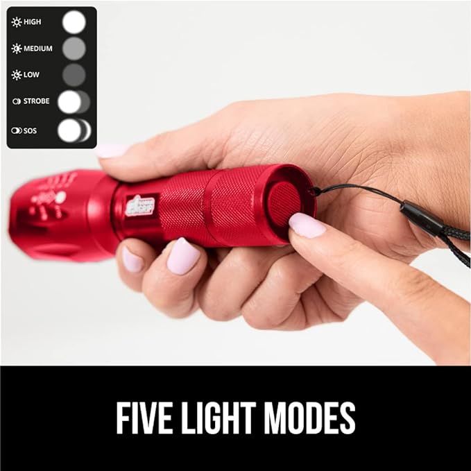 Gorilla Grip Powerful LED 750 FT Water Resistant 5 Adjustable Mode Tactical Flashlight, High Lumens Ultra Bright Battery Zoom Flashlights, Small Camping Car Mini Flash Light Accessories, 2 Pack Red