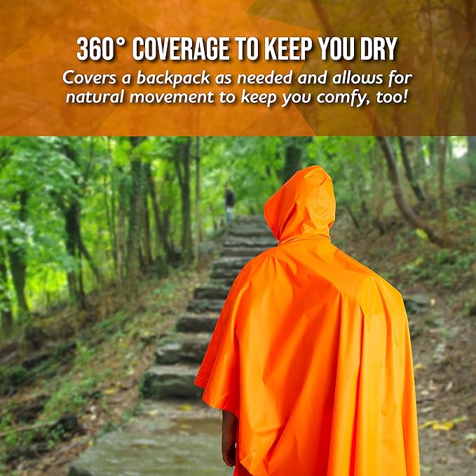• BE PREPARED TO BRAVE THE WEATHER: Don't let the weather get in the way of your plans of a hiking trip, camping weekend, or outdoor music festival. Our hooded rain poncho's got you covered, with 100% waterproof PVC material you can rest assured that you will remain dry and comfortable during your adventure!