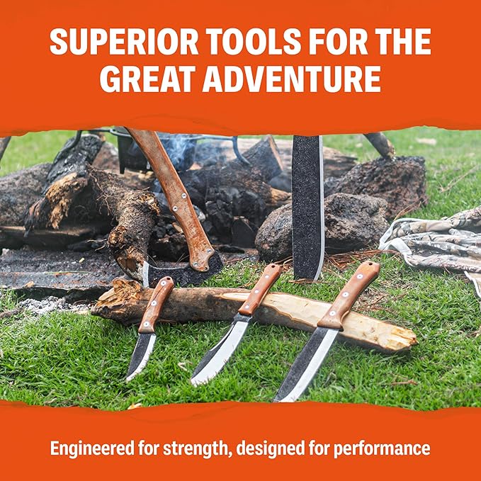 - VERSATILITY: The flat grind with second bevel is a deliberate design choice of our bush knife that makes it excel at tasks such as hunting for skinning, hiking, camping for cutting rope, and food preparation and is also essential for bushcraft activities.