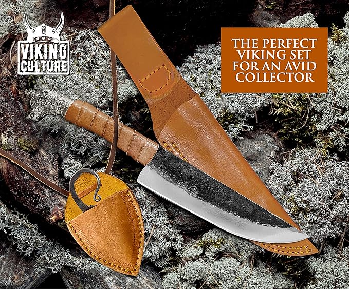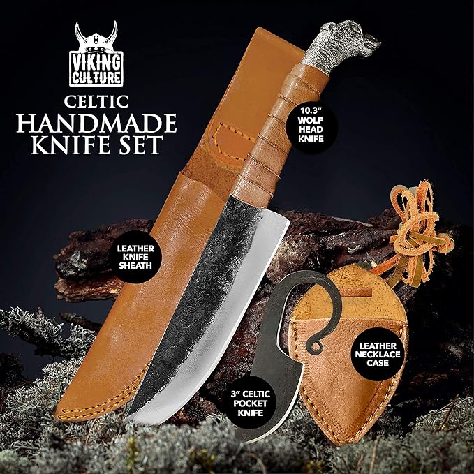- 🗡️ MEDIEVAL BEAUTIES - Celtic knife and Viking blade are hand-forged from carbon steel, giving them a rustic and age-worn look. They fit right into your antique collection.