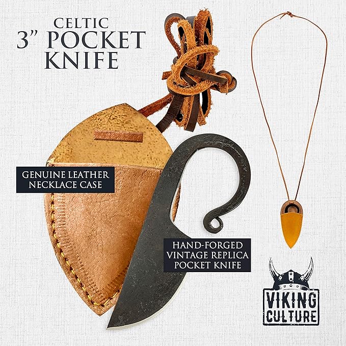 - 🗡️ UNIQUE POCKET KNIFE - This 3" Celtic knife sports a design that takes you back to the early middle ages. The wide blade and finger loop created by the tang gives it an appeal like no other!