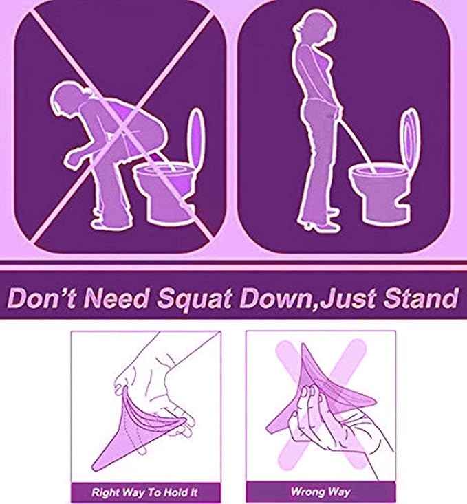 - Pee Standing Up for Women: Enjoy your travel time. You won't have to worry about using a dirty public toilet facility or risking their safety, or use a narrow aircraft toilet. You can pick female urinal when you go camping,, hiking,boating. No more squatting behind a car or a bush or an tree ! also help the injured person, let her stand peeing, avoid squatting Bring body pain.