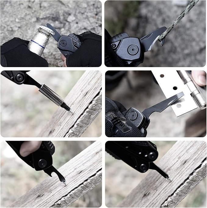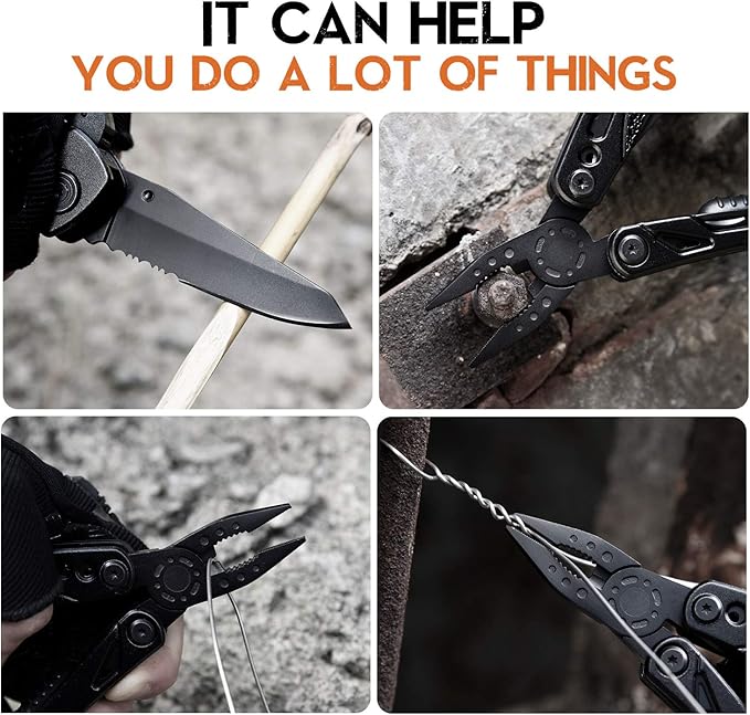 - Fathers Day Gifts for Dad: Must-have EDC multi tool, ideal for camping, fishing, hiking, home renovation, DIY jobs and outdoor activities! Can cut, open bottles, screw screws, saw wood, get fire, make a call for help, cut rope curtains in dangerous escape ports etc.