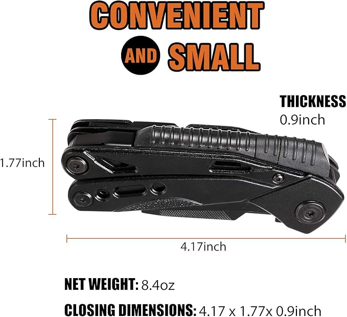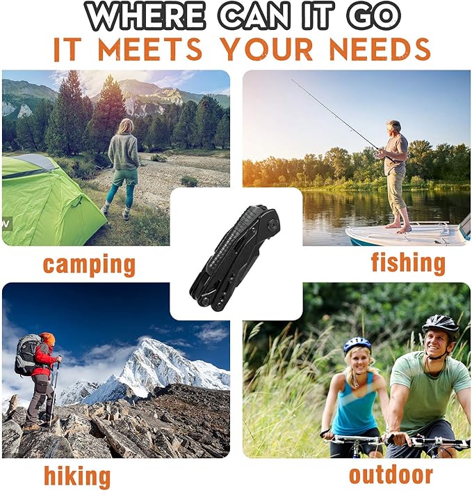 - Useful Cool Gadgets: Stainless Steel construction Multitool is a must-have addition to anyone's camping fishing hiking outdoor gear and equipment, feels great in your hands without the heavy weight of more expensive tools.