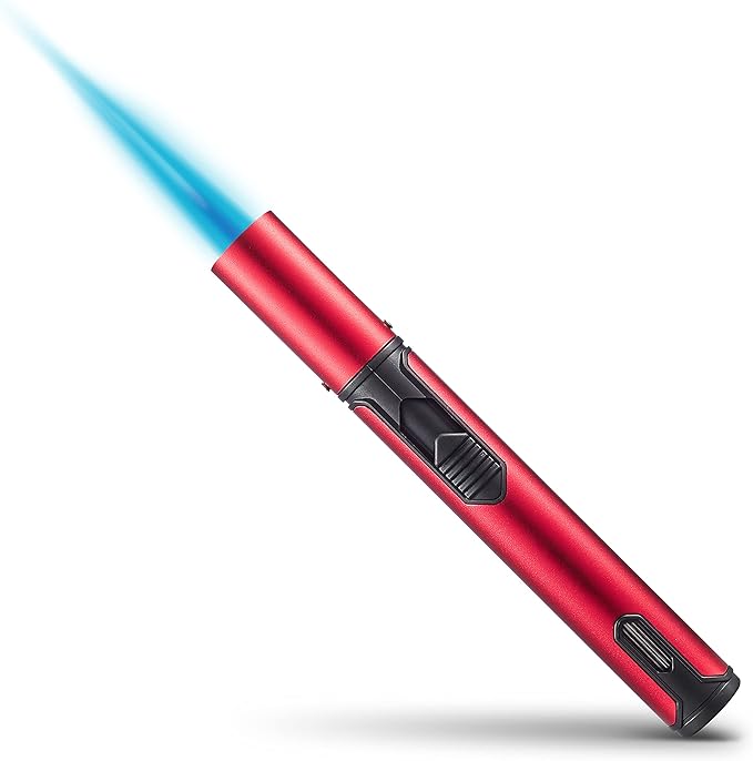 Urgrette 1 Pack Butane Torch Lighter, 6-inch Refillable Pen Lighter Adjustable Jet Flame Butane Lighter for Grill BBQ Camping (Gas Not Included) Ruby