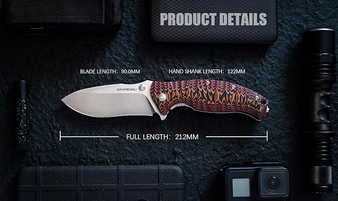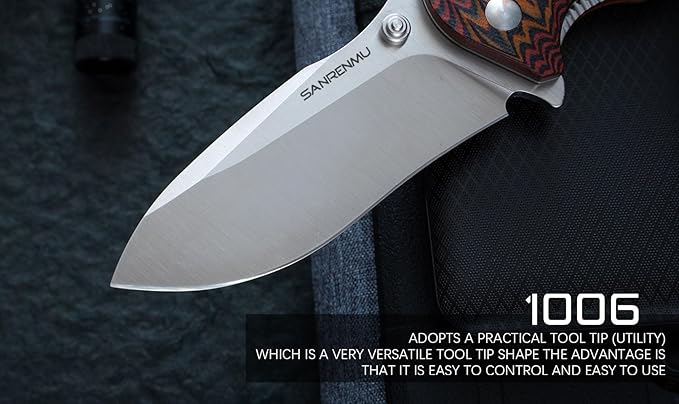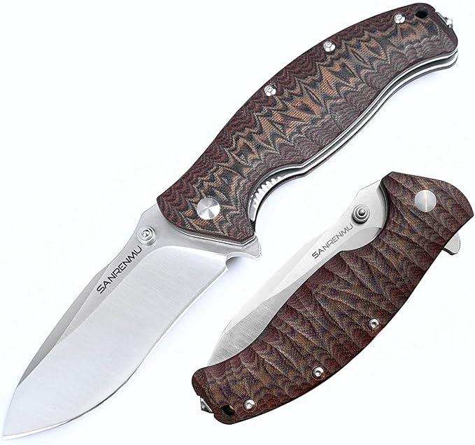 SRM SANRENMU 1006 NEW Pocket Folding Knife 14C28N Blade Flipper Ball Bearing Outdoor Camping Survival Tool EDC (Brown)