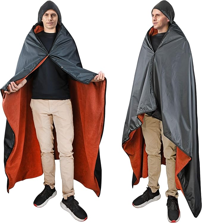 Catalonia Waterproof Blanket for Outdoor, Hooded Blanket Poncho, Windproof, Warm for Stadium,Sporting Events, Camping