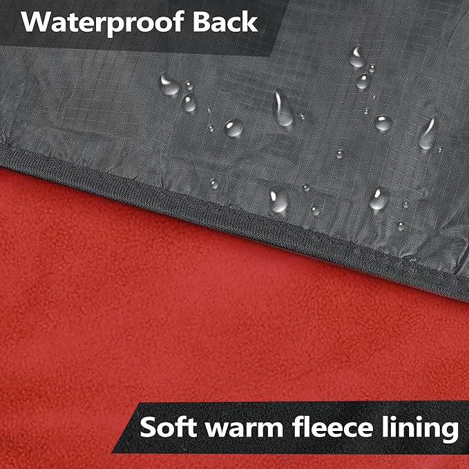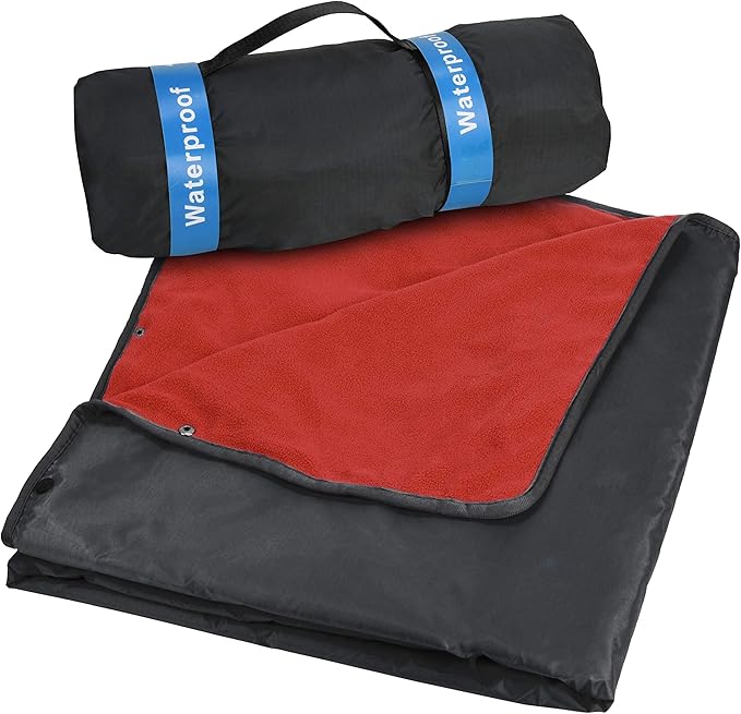 - 【Warm and Dry】This outdoor blanket is durable and rain-proof, with waterproof fabric and warm fleece lining. It will keep you dry and warm during raining and windy days. Perfect for sitting on damp grass at football game or sandy beach .