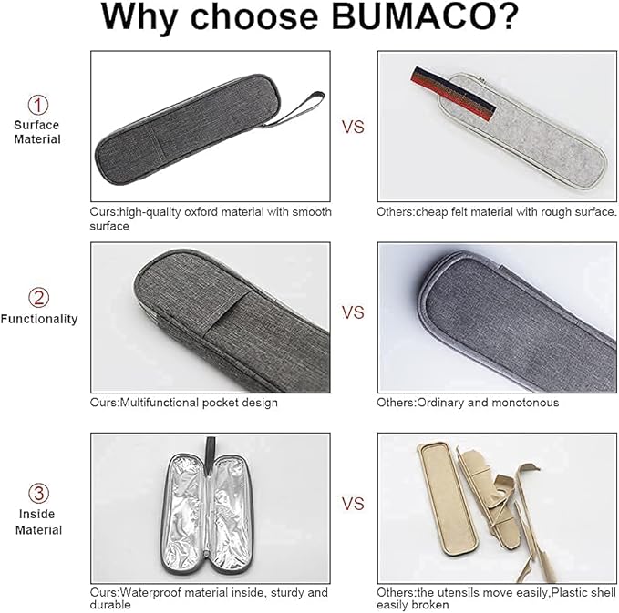 - Eco-friendly & Easy to Clean- Say no to throwaway or single-use plastic flatware! It is an environmentally-friendly way to use this Reusuable travel flatware with chopsticks. The waterproof lining inside the travel cutlery sets is made of aluminum foil which is easy to clean.