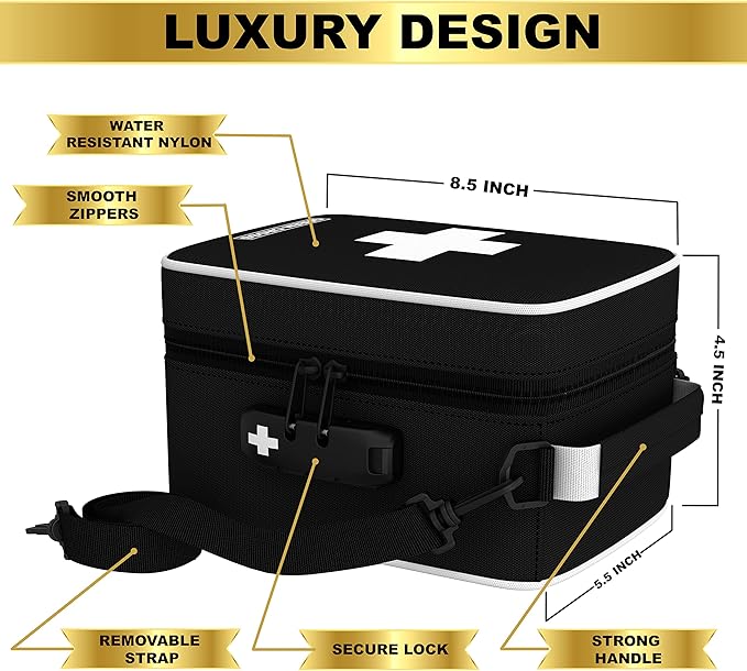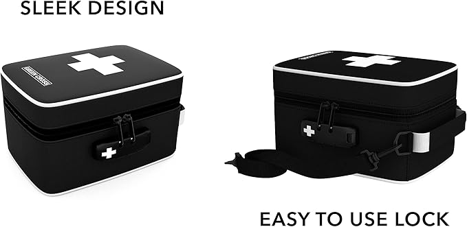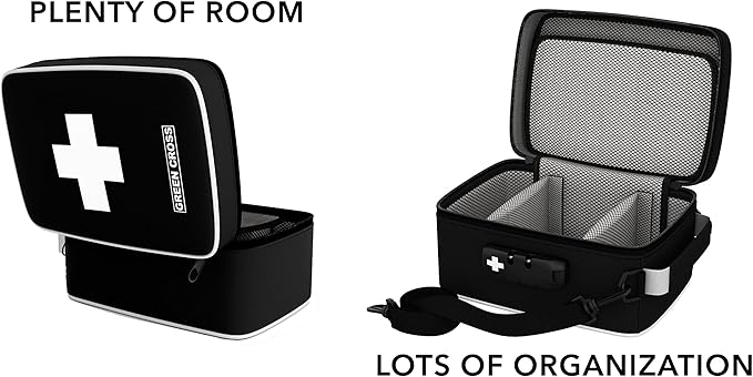 GREEN CROSS Medicine Bag with Combination Lock 8.5" x 5.5" x 4.5" (Black Nylon)