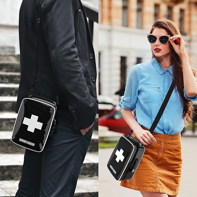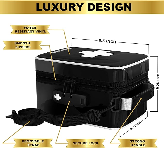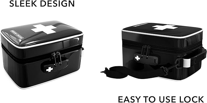 GREEN CROSS Smell Proof Bag Stash Box Medicine Bag Stash Bag 9x6x5 (Black Vinyl)