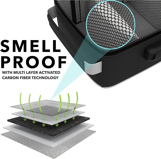 - THE PERFECT SMELL PROOF BAG STASH BAG FOR MEDICAL ITEMS AND ACCESSORIES. Multi layer premium, advanced, carbon activated lining. Designed exclusively to keep even the smelliest odors from escaping and your stash items fresh, flavorful and secure.
