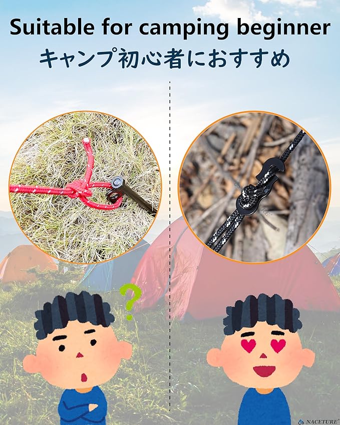 - 𝗕𝘂𝘆𝟮𝗼𝗿𝗠𝗼𝗿𝗲, 𝗔𝘂𝘁𝗼𝗦𝗮𝘃𝗲𝟱%✅FUNCTIONAL TENT ACCESSORIES - Don’t stress anymore when you’re out hiking or at the beach and you think your tent is going to be seen rolling away like a tumble weed, because we got you covered. Our hiking tent rope adjuster will help you to protect your tent securely from strong wind and rainstorm so you can finally have your peace of mind.