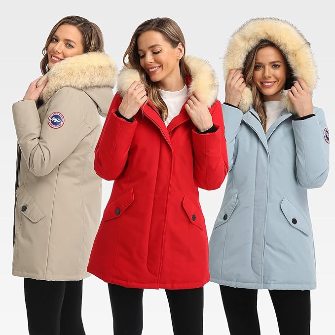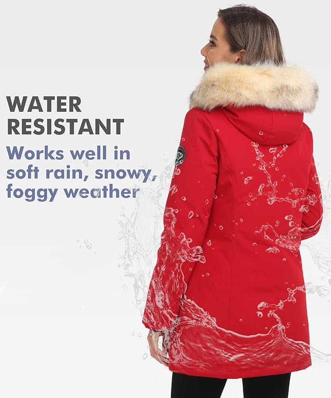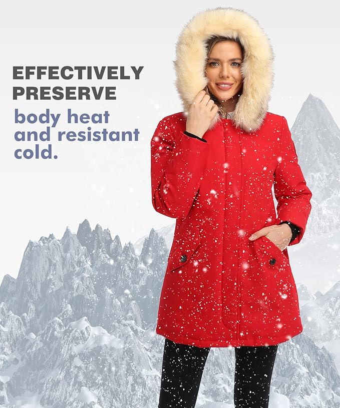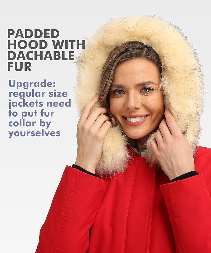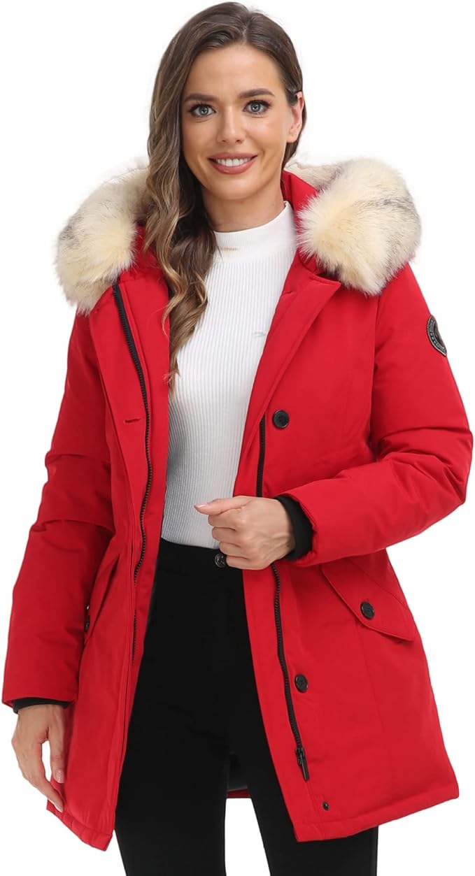 PUREMSX Duck Down Winter Coat for Women Insulated Long Thick Fur Hood Puffer Warm Parka Jacket