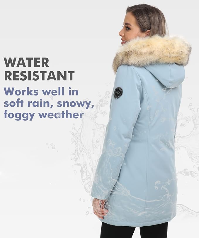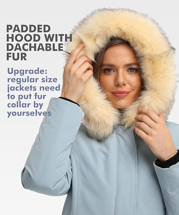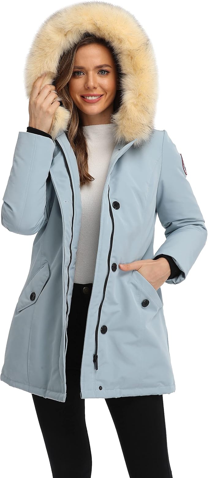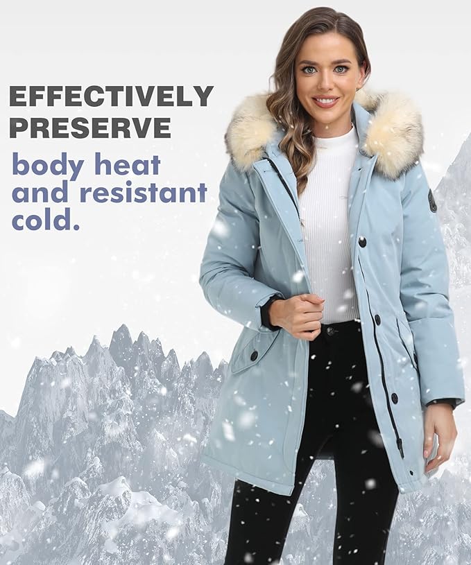 PUREMSX Duck Down Winter Coat for Women Insulated Long Thick Fur Hood Puffer Warm Parka Jacket