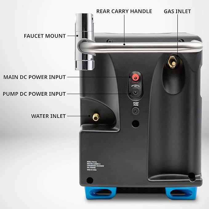 - PORTABLE OUTDOOR SHOWER & HEATER | 2-in-1 Propane-Powered Pump System Allows You to Heat & Dispense Water for Showering, Washing Dishes, Cleaning Hands & Other Indoor & Outdoor Rinsing Tasks | Includes Water Heater, Pump Hose & Plug, Gas Regulator, Faucet Mount, Shower Head, Power Adapters & Carry Case
