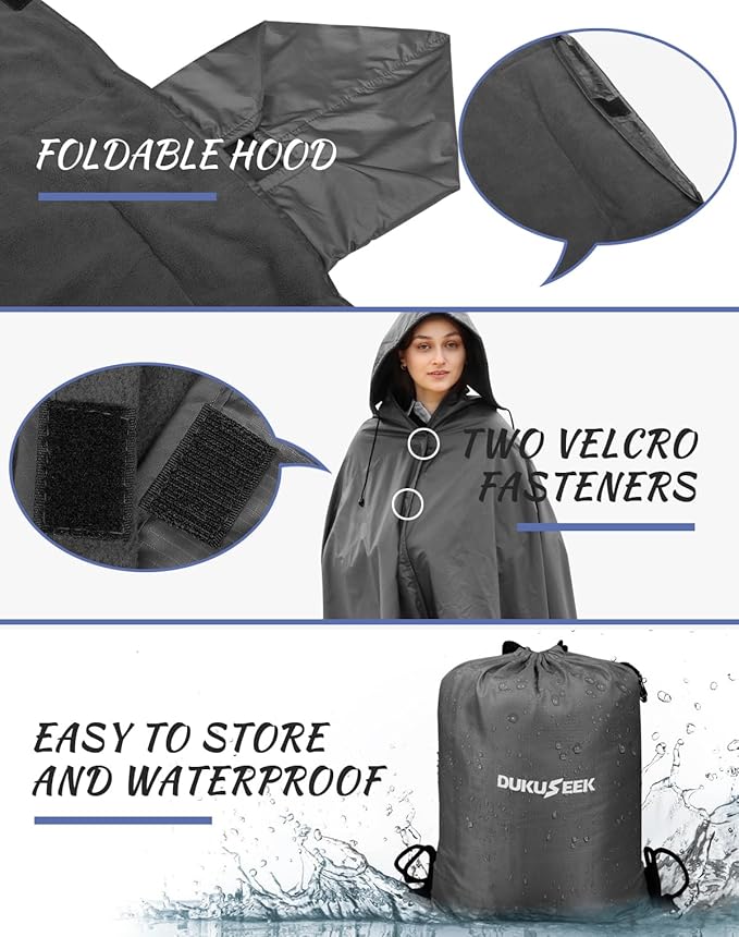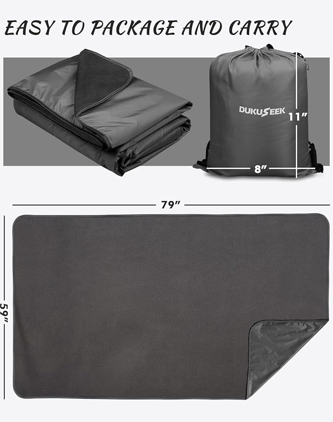 - ✅ 𝗦𝗧𝗔𝗗𝗜𝗨𝗠 𝗕𝗟𝗔𝗡𝗞𝗘𝗧 𝗪𝗜𝗧𝗛 𝗨𝗡𝗜𝗤𝗨𝗘 𝗛𝗢𝗢𝗗𝗘𝗗 𝗗𝗘𝗦𝗜𝗚𝗡:The DUKUSEEK outdoor waterproof stadium blanket for cold weather has an adjustable hood, which can be easily unfolded and converted into a poncho and cloak in rainy days. And it comes with a stuff sack for easy carrying and storage.
