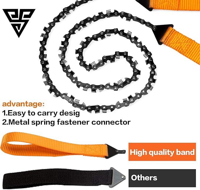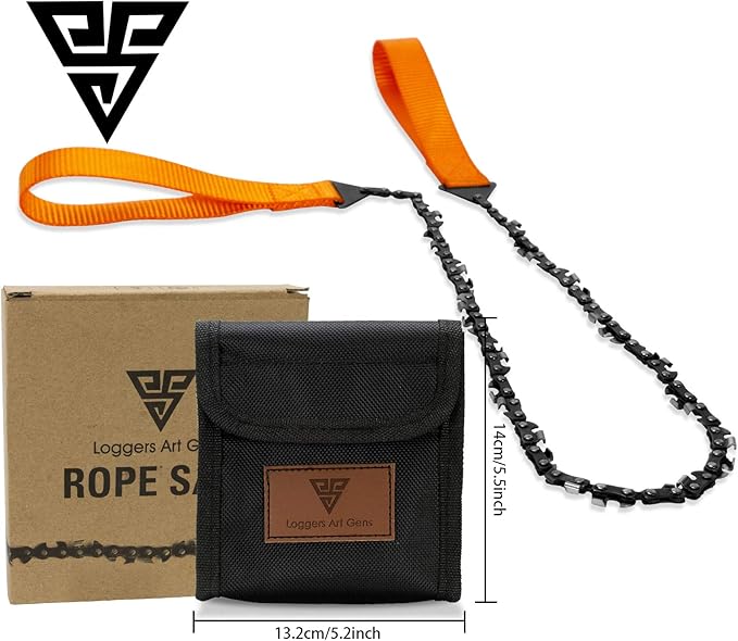 - ✔36 INCH CHAIN ROPE CUTS OVERHEAD BRANCHES EASILY!EQUIPPED NYLON HANDLE AND CASE! This rope chainsaw is 36 inches, making it easy to cut or prune and fit into tight grooves where chainsaws can’t. The extra length creates a safe distance and easier cutting for one or two people. The heavy duty nylon handles are extremely durable and give comfortable and safe grip even when wet. The case can be worn on your belt for easy access or stowed away in your backpack.
