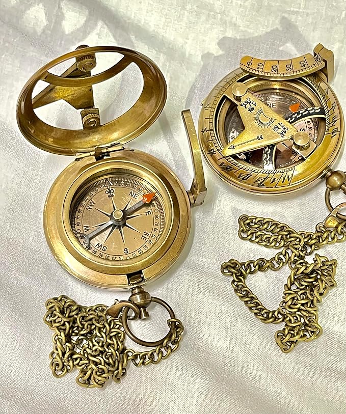 - The air damped compass is made of brass and is antiquated to give antique brown finish.