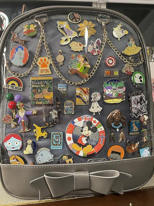 - ❤Pins Display Backpack❤:You can put some anime pins,keychains,badges,brooches in the clear window without the risk of losing them.Glitter makes everything shine.