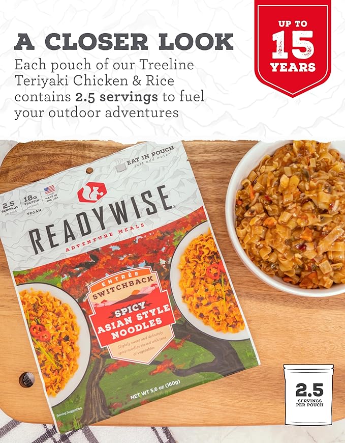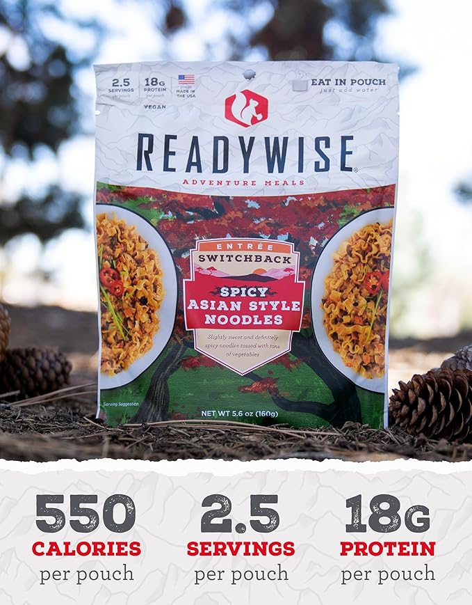 - VERSATILE USES: Beyond camping and survival, ReadyWise Spicy Asian Style Noodles is perfect for home storage, quick family dinners, and last-minute meals. It's a versatile addition to your pantry.