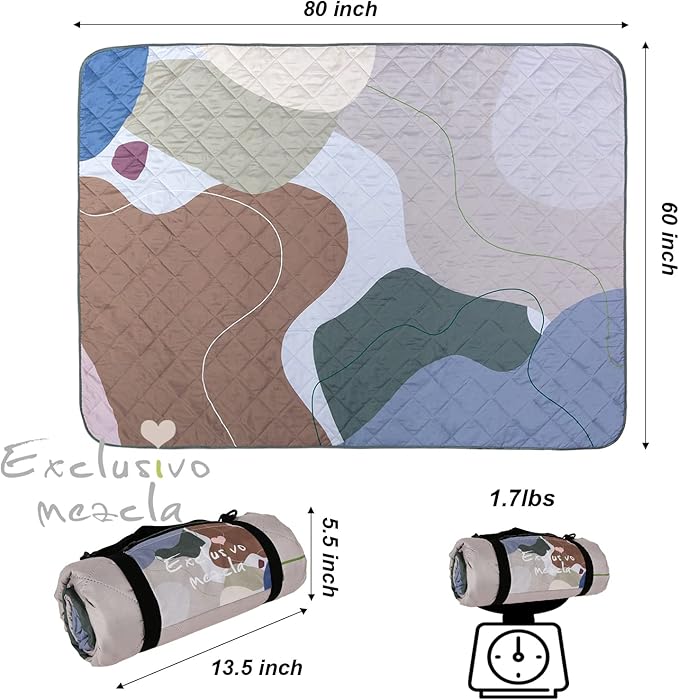 - STYLISH: Our picnic blankets are designed to be chic and unique. The experienced designers of Exclusivo Mezcla creatively give this product delightful combinations in a irregular way, featuring a sense of flow. Look cute in photos and easily spotted in any occasions. Anytime, anywhere, this blanket will be an ornament to light up your life. A lovely and useful present to surprise your lovers.