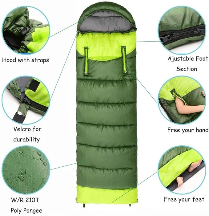 - 💖 【High Quality Durable Material】Shell Material - 210T Anti-tearing Polyester Fabric which is waterproof and Breathable for optimal warmth and insulation to protect you from the elements. the sleeping bag is very suitable for camping, hiking, traveling, outdoor and so on