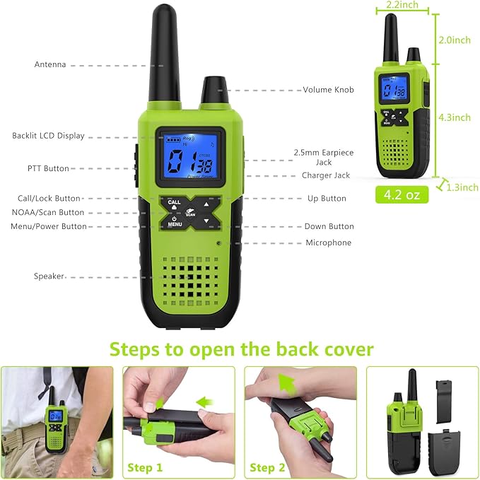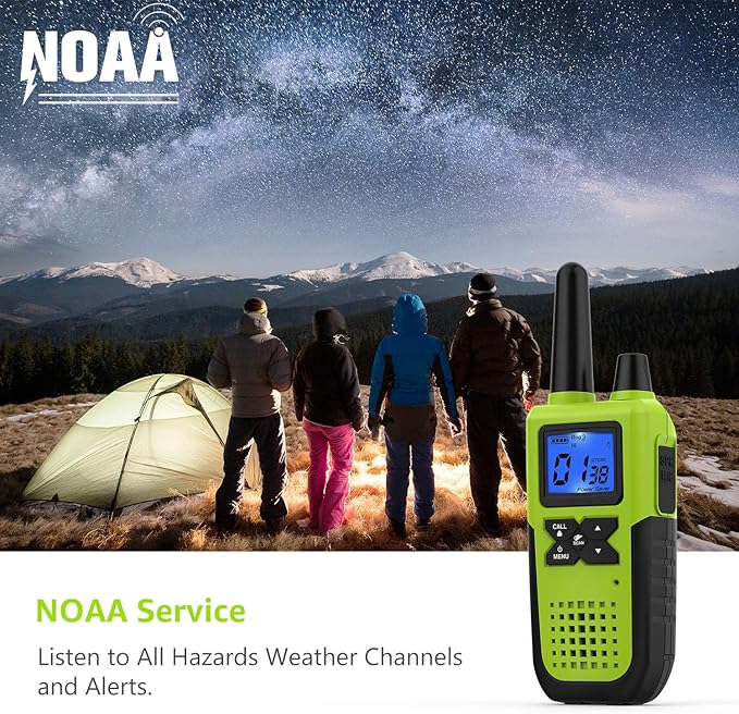 - 【NOAA Weather Service Integration】 : Get instant NOAA alerts to stay a step ahead of the weather, even when there's no cell service in remote areas. Our walkie talkies offer NOAA's National Weather Service access, keeping you alerted on all hazards weather channels and updates. Whether the skies are clear or the weather turns severe, your family outings are safer and more enjoyable, with less worry about the unpredictability of nature