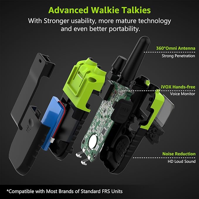 - 【Clear Conversations, Longer Distances】 : Say goodbye to communication barriers, and hello to clarity. The walkie talkies for adults boast an impressive long-range transmission and better sound technology, keeping you connected over vast distances when it matters most, ensuring uninterrupted, crystal clear sound even in noisy environments. Great for family & team engaging in various indoor or outdoor activities such as coordinating a festival or hiking through the mountains