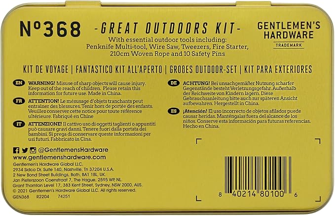 Gentlemen's Hardware - The Great Outdoors Kit, Tin-Cased Multi-tool, 15-Piece Survival Kit, A Camping Essential, 100% Stainless Steel, The, Versatile, Convenient