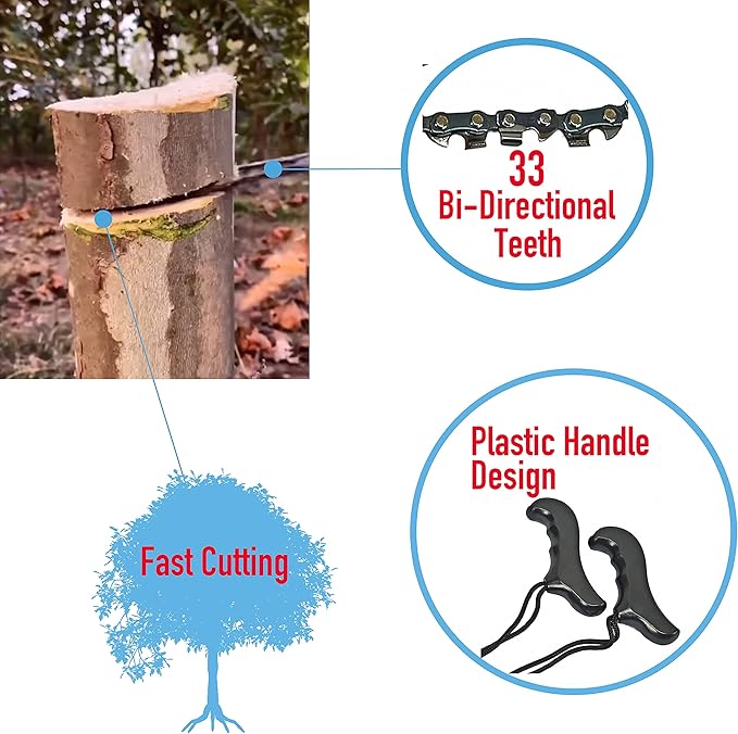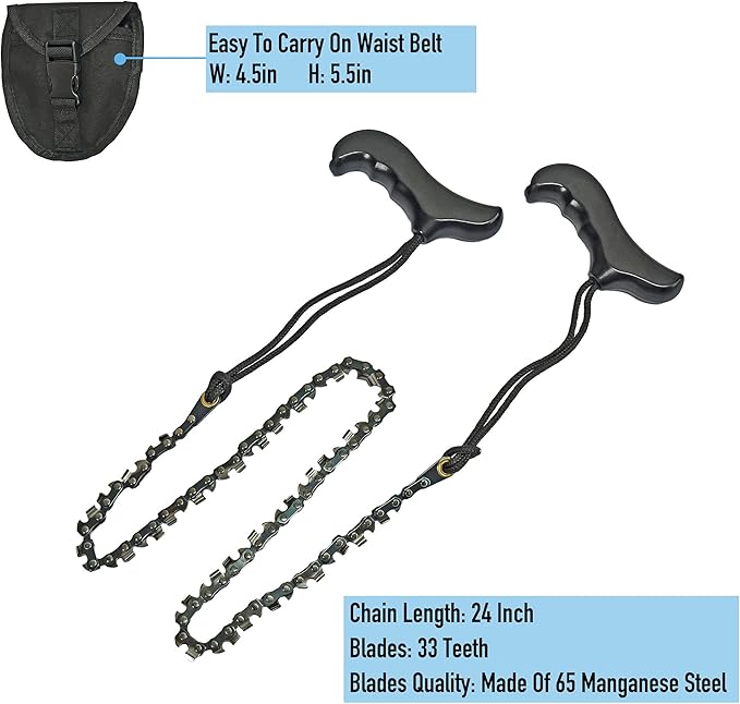 24 Inches Pocket Chainsaw with 33 Bi-Directional Cutting Teeth/Blades, Outdoor Survival Gear, Hand Saw, With Carry Pouch,For Camping,Hunting,Tree Branch Cutting,Hiking,BackPacking