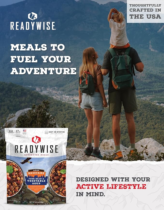 READYWISE - Adventure Meal, Bean & Vegetable Soup, 2 Servings, Pack of 1, Emergency Preparedness, Freeze Dried Food, MRE, Snack Pack or Emergency Food, Backpacking, Camping, Hiking, and, Survival Food