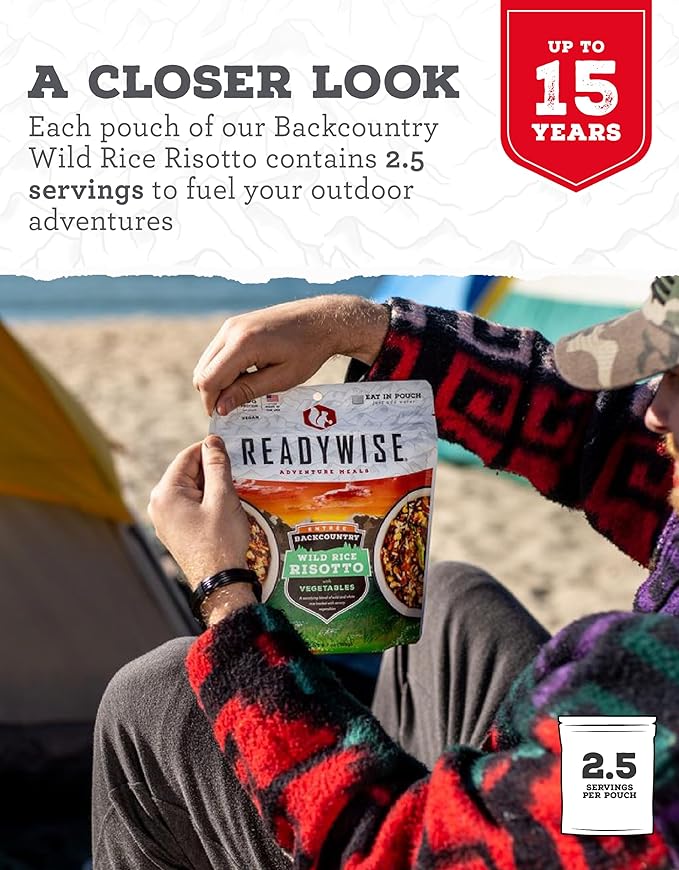 - VERSATILE USES: Beyond camping and survival, ReadyWise Wild Rice Risotto is perfect for home storage, quick family dinners, and last-minute meals. It's a versatile addition to your pantry.