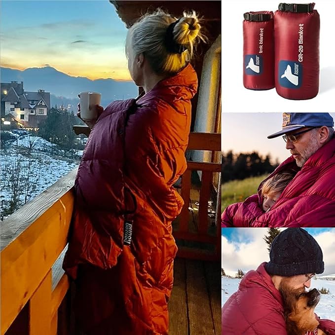 - VERSATILE DESIGN: For backpacking, hiking, a festival, the couch or beach, our puffy down throw clips together for a warm poncho-style stadium blanket. Pairs well with the rest of your thermal equipment for warmth in winter.