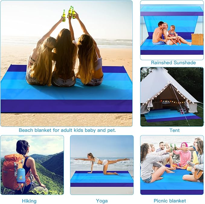 - 🏕️Beach Blanket Oversized:Good wear resistance,Dry-Quick,Can also be used as a rain shed,sunshade,tent,toddler crawl,Emergency mat,Feel comfortable lying down,Won't irritate your skin,Better professional fabric sewing.
