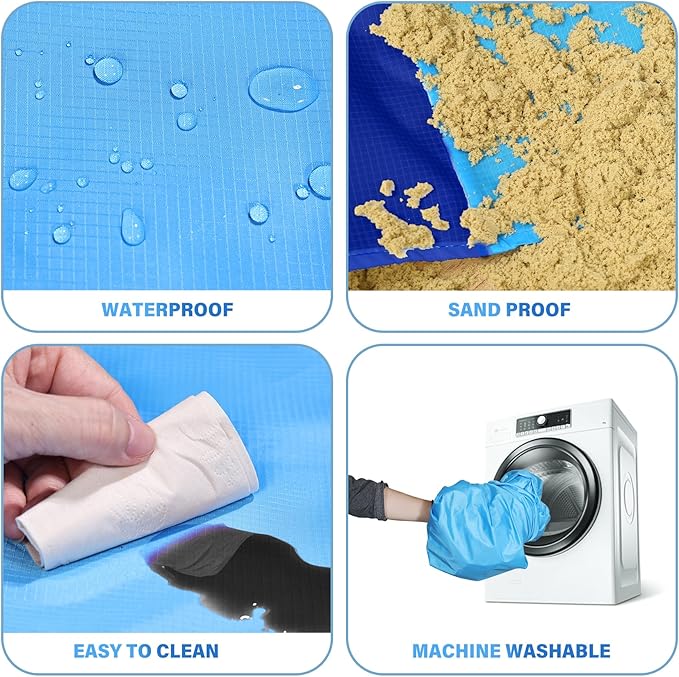 - 🏖️Beach Blanket Waterproof Sandproof:78''×81''size beach blanket,suit for 1-5 adults in total,odorless,made by parachute fabric.Rip-stop 210T polyester,light weight and small after folding.12 oz easy to carry,small and mighty!