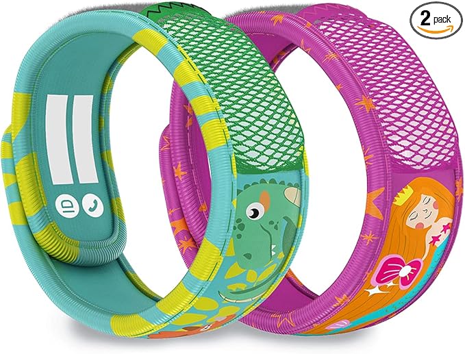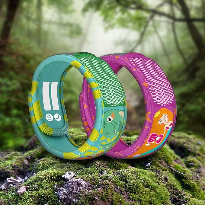 PARA'KITO Mosquito Repellent Pack - 2 Kids Wristbands & 2 Refills Green Dinosaur/Mermaid