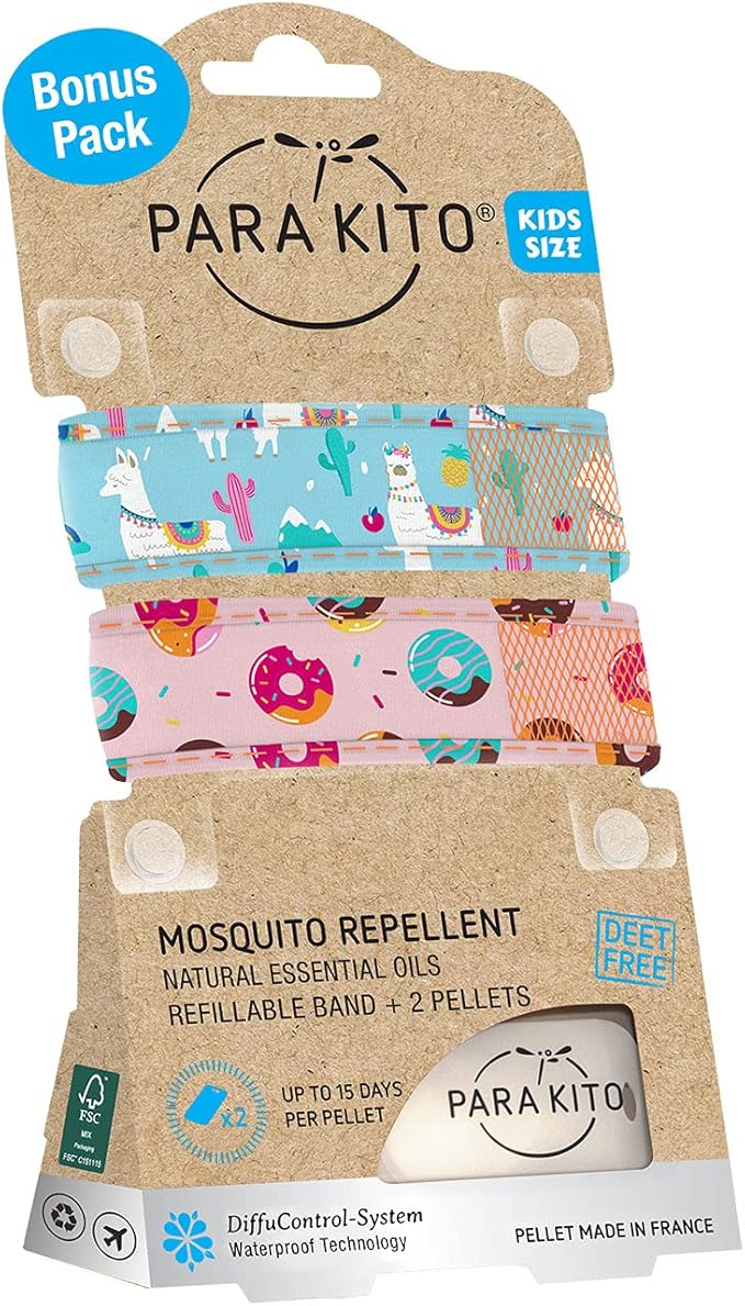 PARA'KITO Mosquito Repellent Pack - 2 Kids Wristbands & 2 Refills Llama/Donut
