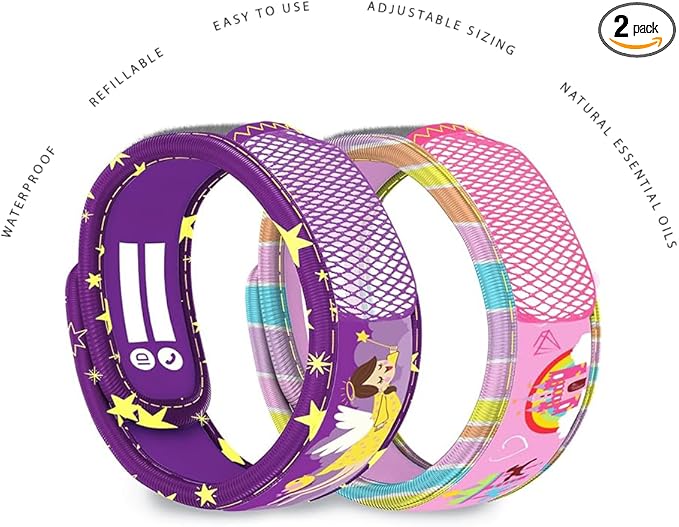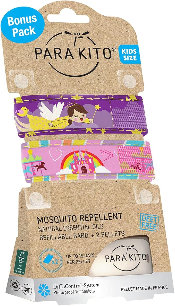 PARA'KITO Mosquito Repellent Pack - 2 Kids Wristbands & 2 Refills Angel/Castle