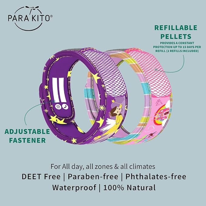 - PARA'KITO Kids Wristbands provide constant protection for 15 days per refillable pellet (2 Pellets Included)